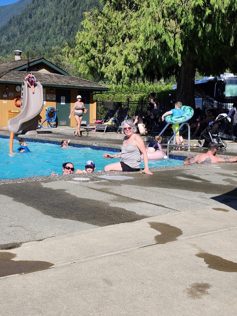 Once we arrived at the Horseshoe Bay terminal, we headed straight to our first stop, Camperland in Chilliwack, British Columbia, about a 2-hour drive. We’ve never stayed here, and it has a pool, so with temperatures in the high twenties, it was a big bonus, especially for the grandkids.