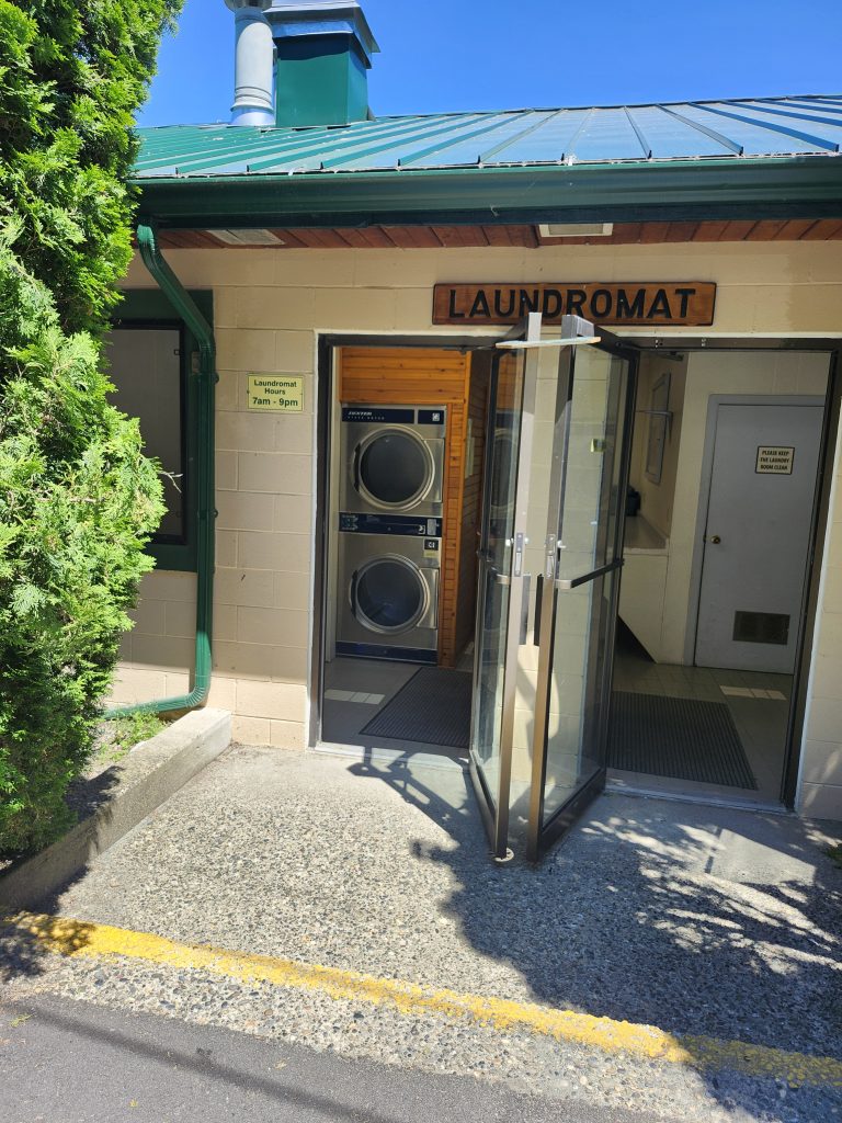 The Campground has all the amenities, clean washrooms and a laundry room with newer machines and plenty of them.