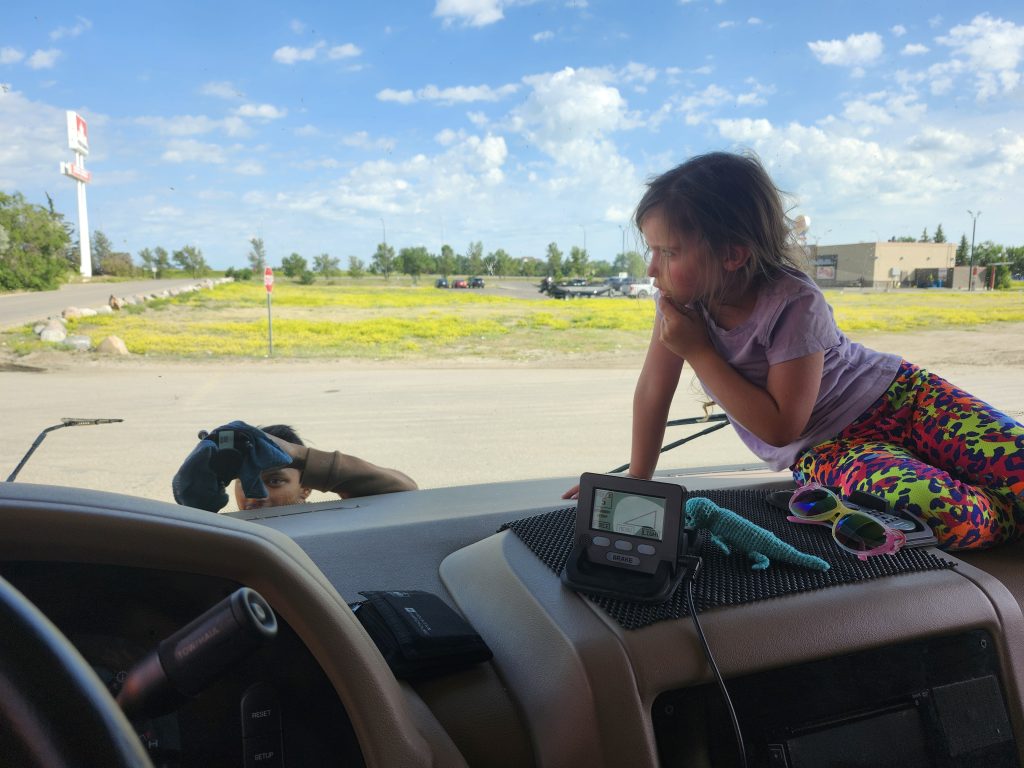 The prairies are known for long, straight stretches of highway. What adults might find meditative, kids often find boring.